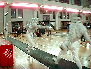 München: Mit Siegen über die beiden bisherigen Ranglistenersten Steffen Wiesinger und Eero Lehmann (TBB) erreichte Willi Kothny von der CTG-Königsbacher beim Säbelturnier "Münchner Schwert" das Finale der letzten acht, mußte sich dort aber dem alles überragenden Turniersieger Martin Kindt aus Tauberbischofsheim geschlagen geben. Kothny schob sich damit auf Platz 6 der Deutschen Rangliste und ist somit bei den Weltcups startberechtigt. Dennis Bauer schied wegen einer Blinddarmentzündung aus. |