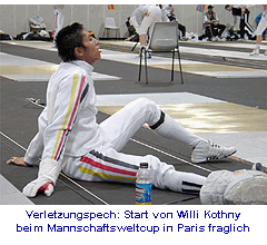 Tauberbischofsheim: Willi Kothny hat sich beim ersten Training mit der Nationalmannschaft nach Olympia verletzt. Eine tiefe Wunde am Mittelfinger der Fechthand macht seinen Einsatz am kom- menden Wochenende in Paris fraglich.