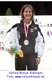 Koblenz: Sandra Benad aus Eislingen gewann am zweiten Tag der Fecht-Europameisterschaften in Koblenz die Silbermedaille im Damensäbel. Im Finalgefecht musste sie sich der Russin Elena Netschajewa mit 11:15 geschlagen geben, Platz 3 teilen sich Heidi Rohi aus Estland und die Ungarin Hajnalka Kiraly. Enttäuschend dagegen das Abschneiden der deutschen Degendamen: Drei von vier Starterinnen schieden bereits in der Runde der letzten 64 aus, die beste Platzierung erreichte Britta Heidmann aus Leverkusen mit Rang 9.