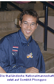 Koblenz: Der thailändische National-Fechter Somkhit Phongyoo reiste am Freitag nach Thailand, um an den Südostasienspielen in Malaysia teilzunehmen. Phongyoo hatte bei den letzten SEA- Games mit der thailändischen Mannschaft Gold geholt. Auch in diesem Jahr rechnet sich die thailändische Amateur Fencing Association eine Medaille bei den Säbelfechtern aus. Phongyoo wird mit Top und Chat an den Start gehen. Top hatte sich vor 3 Jahren bei Eberhard Mehl auf die Asienspiele vorbereitet.