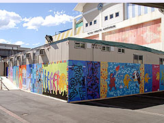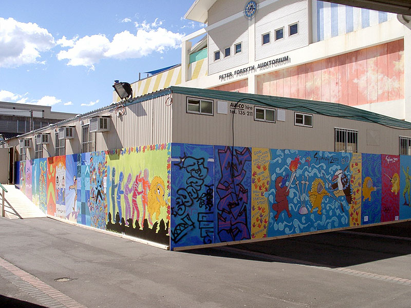 Das Peter Forsyth Auditorium wird für drei Wochen Heimat der Fechter sein. Abseits der Wettkampfstätte trainieren hier alle Waffen nach einem vom IOK vorgegebenen Zeitplan. Die kunstvoll bemalten Container stehen vor der eigentlichen Fechthalle auf einem Basketballplatz und dienen den Sportlern als Aufenthalts- und Massageraum. ür die originelle Gestaltung der Container zeichnen die Schüler des Peter Forsyth- Schule verantwortlich. Sie weisen dem ankommenden Fechter schon von weitem den Weg zur Folterkommer.