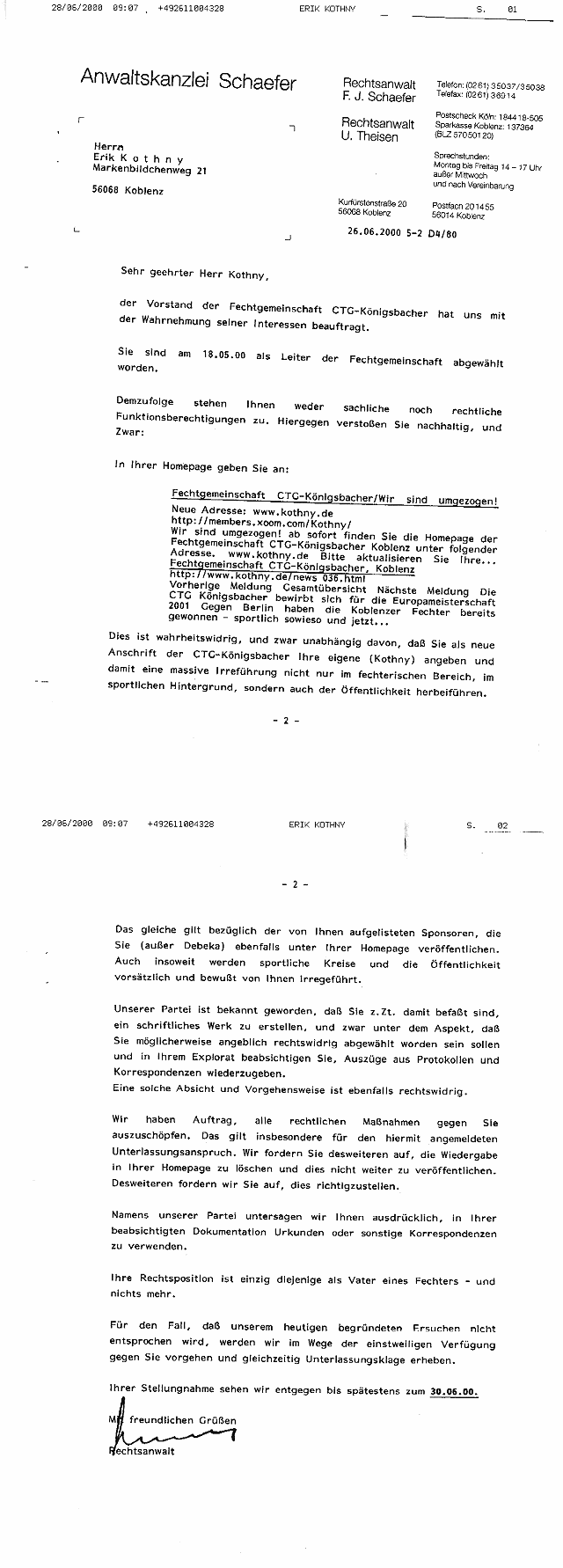 Monika Sauer (CTG) gab um die Jahreswende 1997/98 aus damals nicht nachvollziehbaren Gründen Kothny den Auftrag, Verhandlungen mit Jörg Rohrer bezüglich einer Kooperation / Fusion aufzunehmen. Heute steht fest, dass die finanzielle Belastung der CTG-Vereinskasse durch die Fechter in Höhe von ca. DM 20.000,00 den Ausschlag dazu gegeben hatte.