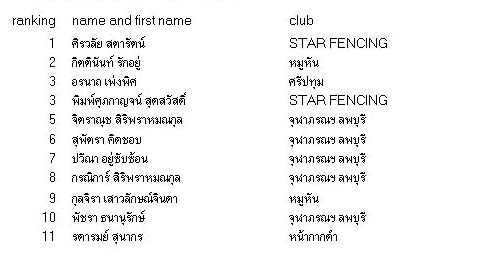Epee Women not older than 20 years