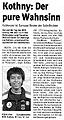 Ein Jahr benötigte Erik Kothny, um seinen Adoptivsohn, der unterernährt und mit Wasserbauch in Europa ankam, aufzupäppeln. Zur Fechtkunst brachte ihn sein Sportlehrer auf dem Gymnasium. Eberhard Mehl war Florett-Dritter bei den Olympischen Spielen 1960 in Rom, und dieser hatte das Talent Kothnys erkannt. Fünf deutsche Meistertitel im Jugendbereich konnte der gebürtige Thailänder verbuchen, zu Ostern in Ungarn die Junioren-WM im Säbel für sich entscheiden. Derzeit führt er die deutsche Rangliste der allgemeinen Klasse an. EM-Gold ist der vorläufige Höhepunkt seiner Karriere.