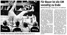 Es war einer jener Momente, die in die Geschichte der Fecht-Europameisterschaften eingehen werden. Es war jener Moment, in dem Wiradech Kothny, Nummer 30 der Säbel-Weltrangliste, den amtierenden Weltmeister Luigi Tarantino einer Raubkatze gleich ansprang, den Treffer zum 15:14-Sieg setzte und sich in Bozen (Südtirol) am Donnerstag nachmittag zum kontinentalen Titelträger in dieser Waffe krönte. Ein Moment, der beim aktuellen - aber glücklosen - Branchenführer Tarantino lediglich Kopfschütteln und einige unangebrachte Bemerkungen hervorriefen. Wie beispielsweise: Ich müßte mir eigentlich den nächsten Baum suchen und mich erhängen. Oder: Wenn ich nicht fähig bin, dieses Finale zu gewinnen, dann werde ich wohl nie Europameister. Oder auch: So einfach wie heute wäre ich nie EM-Goldmedaillengewinner geworden.