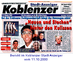 11.10.2000: Vorstandsmitglied Monika Sauer gab Willi Kothny während des Empfangs der Stadt Koblenz zu verstehen, er werde Schwierigkeiten in der Schule bekommen, falls er den Verein wechselt (Anm.: Möglich, dass sie sagte: Verein, ausserhalb von Rheinland-Pfalz).