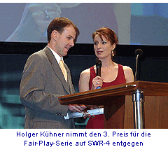 Die Fair-Play-Trophäe gewann überraschenderweise das Publikum von Sydney. Bürgermeisterin Luci Turnbull nahm das Kunstwerk entgegen. Auch der Südwestrundfunk ging nicht leer aus: Sportredakteur Holger Kühner nahm den 3. Preis für die SWR-Fair-Play-Serie im Hörfunk SWR-4 entgegen.