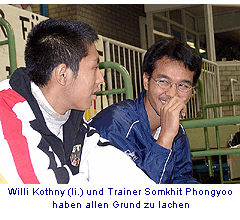 Dennoch: Geheimnis des Erfolges bleibt das Trainingskonzept seines alten Trainers Eberhard Mehl, das Bruder Somkhit Phongyoo konsequent weiterführt; vielleicht nuanciert durch etwas mehr Einfühlungsvermögen und Dialogbereitschaft. Der Trainerwechsel war riskant - wie Willis Fechtstil. Somkhit Phongyoo zeigt, dass er bemerkenswerte Trainerqualitäten besitzt: Bei Lektionen und im Kraftraum unbarmherzig, hält er sich - wie sein Vorbild Mehl - beim Wettkampf eher zurück. Auch nervt er seinen Schüler auf der Planche nicht durch Nörgelei. Viel lieber analysiert er den Kampf und stellt anschliessend das Training darauf ein. Willi ist nicht der erste Säbelfechter, an dem der mit 23 Jahren wohl jüngste Erfolgstrainer Deutschlands sein Können unter Beweis stellt: Mit Peter Kulasza hatte er schon vor drei Jahren einen deutschen B-Jugendmeister geschmiedet - aus eigener Kraft. Und auch dem späteren deutschen A-Jugendmeister Andreas Hölzenbein hatte er die ersten Fechtschritte beigebracht.