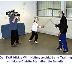 Das Fernsehen filmte Willi beim Krafttraining im Max von Laue Gymnasium, und wie der beste aktive deutsche Säbelfechter die Schüler seines Bruders - der zur Zeit bei den SEA-Games in Malaysia ist - trainiert.