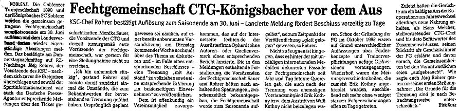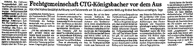 Fechtgemeinschaft CTG-Königsbacher vor dem Aus