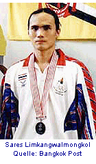 Schwierigkeiten hatte das Thai-Team mit dem Visum für Portugal. Der Gastgeber wollte Top Sares nicht einreisen lassen, weil vorgeschriebene Visa-Formalitäten fehlten. Doch diese Hürde ist inzwischen genommen. Top hatte vom Präsidenten der FIE René Roch eine Einladung zu einem internationalen Trainingscamp am Rande der WM bekommen. Die Reise zur WM wurde für den Oldie erst möglich, als der internationale Verband die Kosten übernahm. Sares ist 27 Jahre alt und hatte aus beruflichen Gründen und einer Knieoperation vor einem Jahr mit dem Fechten aufgehört. Doch jetzt will es der Veteran noch einmal wissen und vor allem bei den Asienspielen zusammen mit seinen neuen Kameraden Somkhit und Willi glänzen.