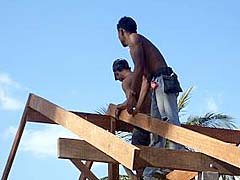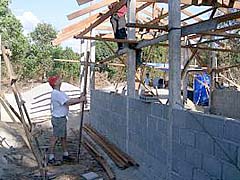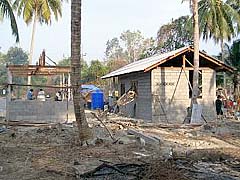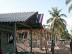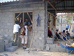 Bahn Bang Sak, 21.01.05: Willi war heute sehr überrascht, mit welchem Enthusiasmus die Arbeiter ihn vor 8:00 Uhr mit Arbeitgeräuschen weckten. Er schläft ja seit zwei Tagen direkt auf der Baustelle in einem Zelt. Das erste Haus ist schon weit fortgeschritten. Die Innenwände der einzelnen Zimmer sind bereits verputzt.