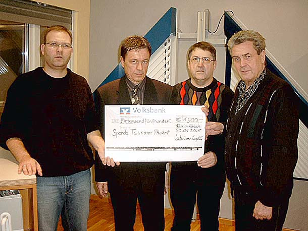 Mülheim-Kärlich: TV-Journalist Erik Kothny nahm bei der Firma Sesterhenn für seinen Sohn, den Säbelfechter Wiradech "Willi" Kothny, eine Spende in Höhe von 1.500 Euro entgegen. Das Geld wurde auf Initiative von Wilfried Zils vom SSV Mülheim-Kärlich, der Firma Sesterhenn und der TomTom PR Agentur im Rahmen des "Sesterhenn-Cups 2005" gesammelt und auf einen runden Betrag aufgestockt. Die Spende kommt dem Verein "Willi hilft e.V." zu Gute, der dem Dorf Bahn Bang Sak in Thailand hilft, nach der Flutkatastrophe wieder auf die Beine zu kommen. Der gespendete Betrag reicht z.B. aus, um einer Großfamilie ihr zerstörtes Haus wieder aufzubauen.