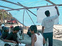 Ban Bangsak: Nach Fertigstellung des ersten Hauses in dem Fischerdorf Ban Bangsak organisiert Willi Kothny um, um noch effektiver voranzukommen. Grund: Im Mai wird der Monsun erwartet. Wenn es dann tagelang wie aus Kübeln giesst, hört jede Bautätigkeit unter freiem Himmel auf. Deshalb kommt es darauf an, dass jetzt der Schwerpunkt auf Fundamente, Säulen und Dächer gelegt wird. Dann kann man nämlich, wenn er Regen kommt, unter dem Dächern weitermachen: Mauern hochziehen, Kacheln, Installationen verlegen.