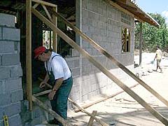 2. Gruppe zimmert und deckt Dach (verstärkt durch Installateure und Maler)