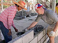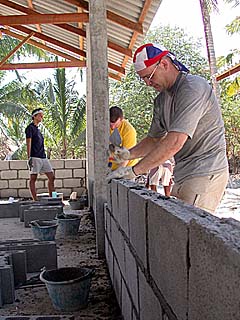 Seit dem 22. Februar 2005 bin ich nun schon beim Projekt tätig. Ich bilde im Crash-Kurs auf englisch alle ungeübten, neuankommenden internationalen Helfer zu Bauarbeitern aus und füge sie ins Bau-Team ein. Außerdem organisiere ich Maurerarbeiten mit.