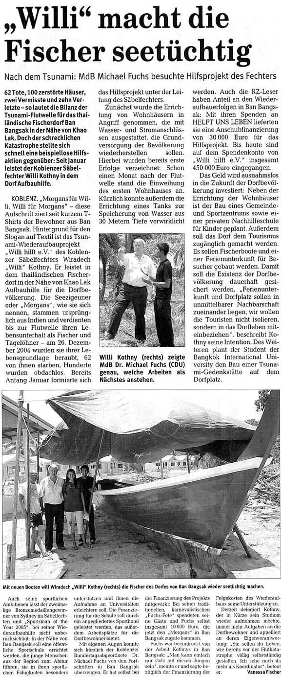 Artikel von Vanessa Fischer in der Rhein-Zeitung vom 19.05.2005