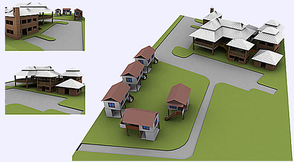 Wohnbereich: Hier sollen die gleichen Häuser stehen, wie sie die verschiedenen Hilfsorganisationen beim Wiederaufbau errichtet haben: Malteser, Mercy Foundation, NGO Tubtawan, NGO Tungwa und The Tsunami Volunteer Center