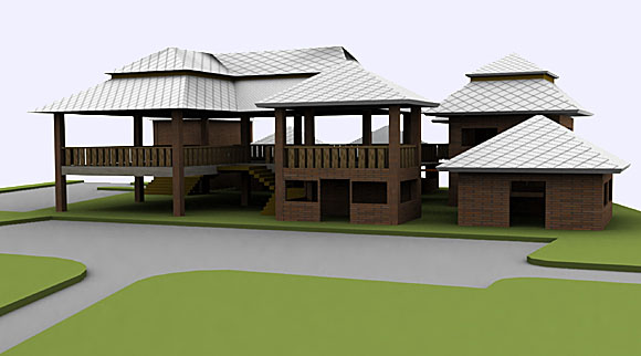 Anfangs wollen wir uns auf das Multifunktionsgebäude konzentrieren. Es wird von der Architektengruppe Chatsiris geplant: Das Mehrzweckgebäude ist in braun gehalten und soll sowohl Gästen als auch den Dorfbewohnern für Feiern, Sportveranstaltungen und andere Aktivitäten offen stehen. Um den Komplex sind Internetraum, Toiletten und zwei Klassenzimmer gruppiert. Die Räume sind so gestaltet, dass sie jederzeit anders genutzt werden können.
