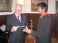 12:30 Uhr: Beim Koblenzer Oberbürgermeister Eberhard Schulte-Wissermann bedankt sich der immer noch mit Hauptwohnsitz in Koblenz gemeldete Kothny für die großzügige Hilfe der Stadt. Ban Bangsak wird einen Koblenzer Platz bekommen.