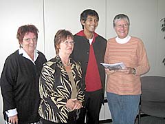 11:00 Uhr: Marianne Wilbert vom Volksbildungswerk Stromberg übergibt Kothny einen Scheck in Höhe von 3.854,61 Euro und sichert weitere Hilfe zu.