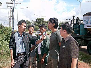 Interview von Channel 11 Von rechts nach links: Sampat Ninpan (Büro des Premierministers), Wiradech Kothny, Somchai Dogathoog und Damrongsak Harntalae (Dorfbewohner von Bangsak)