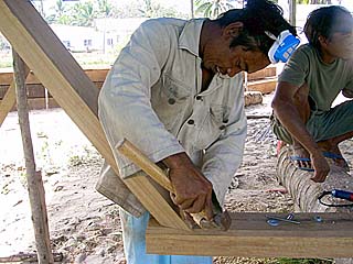 Die Antwort ist einfach: In allen Projekten von Willi hilft sind die Dorfbewohner unmittelbar mit einbezogen. Seit beginn der Hilfsaktion haben die Bewohner beim Aufbau ihres Dorfes die Hauptrolle gespielt. Sie selbst treffen alle Entscheidungen. Sie, die Fischer, haben gesagt, dass dieses spezielle Holz länger hält als die in Thailand üblicherweise benutzten Hölzer.