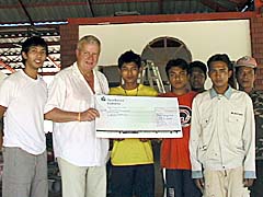 Ban Bangsak: Einen Scheck in Höhe von 12.000 Euro hat Bundestagsabgeordneter Dr. Michael Fuchs den Bewoh- nern von Ban Bangsak überreicht. Als er das Geld vor drei Monaten zugesagt hatte, wurde sofort mit dem Bau des noch ausstehenden Multifunktions-Centers angefangen.