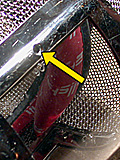 Das Herausfallen der Schraube ist nur eine Frage der Zeit. Und dann besteht etwa in Augenhöhe eine direkte Verbindung von Aussen in den Innenraum des Maske. Ein Stoß würde genügen, um schwerste Verletzungen am Kopf hervor- zurufen.