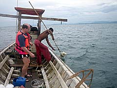 Für umgerechnet fünf Euro können Interessierte Fischer auf ihrer Tagestour begleiten und beim Einholen von Netzen und Reusen behilflich sein. Am Abend landet der Fang als Belohnung fur einen schweren Arbeistag auf dem Grill.