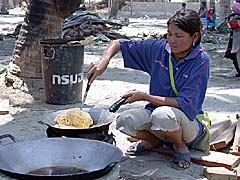 Als Zutat hat die Hausfrau vom nahen Strand ein paar handvoll Miesmuscheln geholt und sie mühevoll für das Abendessen aufgeklopft: