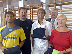 Nach dem Training wurden die beiden thailändischen Fechter der CTG, Willi Kothny und Nontapat Panchan, vom Präsidenten des Fechterbundes Mittelrhein Mogg und der CTG-Vorsitzenden Monika Sauer verabschiedet. Nontapat ist Florettfechter und trainiert seit einem Jahr in Koblenz mit Trainer Nicolai Kotchetkov und begleitet fast täglich Peter Joppich nach Bonn zum Kadertraining.