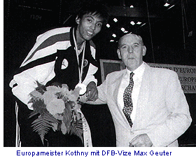 Kothny: Wenn ich gut drauf bin, kann ich jeden in der Welt schlagen - nur leider bin ich nicht immer gut drauf. Meine Stärke ist die Spontanität. Da weiß ich manchmal selbst nicht, was ich tue. Um so ver- Und zu meinen Schwächen: Ich zweifle oft an mir selbst, traue mir realistisch keinen Sieg über einen Stärkeren zu. Das ist ein Fehler, ich weiß und ich glaube, daran muß ich arbeiten.