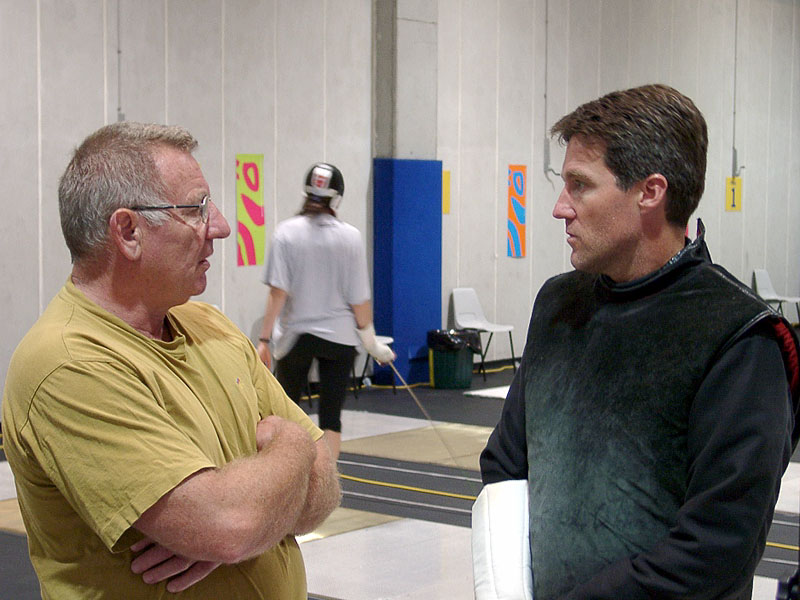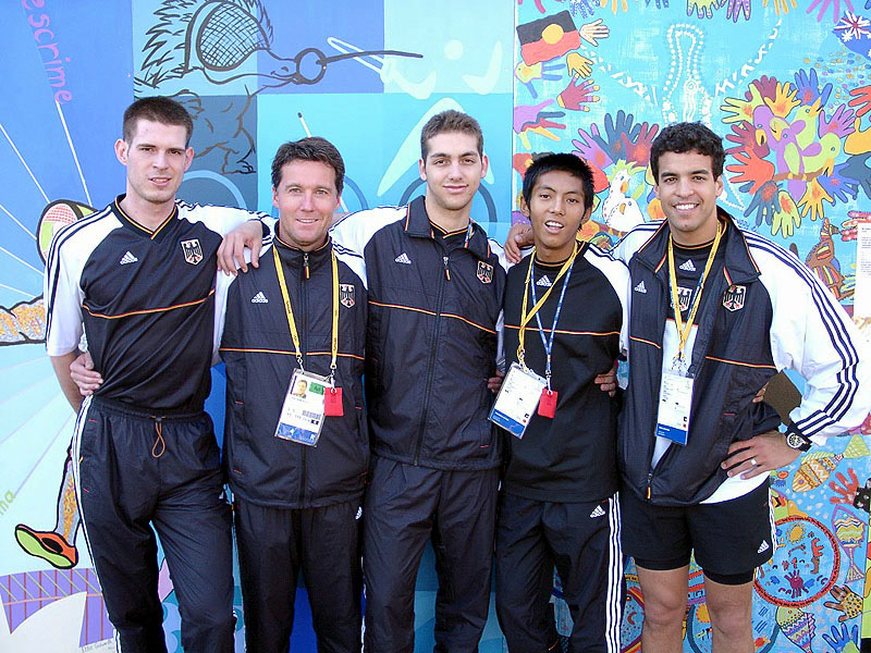 Sydney: Der Mannschaftskampf der Säbelfechter am Sonntag begann bereits am Donnerstag, als Willi Kothny in der Runde der letzten 32 seinen Kameraden Eero Lehmann geschlagen hatte. Der Ratinger kam sofort nach dem Duschen an die Planche und feuerte Willi an, als er gegen den Russen Serguei Charikov um den Einzug ins Finale der letzten acht focht. Die muntere Stimmung im Deutschen Säbelteam - seit Monaten im gemeinsamen Training aufgebaut - wirkte auch auf die anderen Waffen ansteckend, erlitt aber einen Dämpfer, als die Paarungen im Einzel ausgelost wurden und Kothny und Lehmann zusammenführten. Die beiden obwohl dicke Freunde konnten im Training nicht mehr so richtig miteinander fechten - verständlich, wollte doch keiner seine Taktiken und Tricks offenlegen.