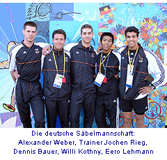 Doch mit Ende des Kampfes Kothny - Lehmann konnten die Mannschaftskameraden wieder unbefangen miteinander umgehen: Wir holen jetzt auch mit dem Team eine Medaille, wurde die Losung ausgegeben. Seit Willi Kothny der Weltelite gezeigt hat, wissen es auch Dennis Bauer, Eero Lehmann und Alexander Weber: Alles ist möglich - auch im Mannschaftskampf, obwohl: leicht wird es nicht, hier Edelmetall zu holen. Die bärenstarken Russen beanspruchen olympisches Metall für sich, die eleganten Franzosen, die schnellen Rumänen um Olympiasieger Covaliu und natürlich die impulsiven Italiener und Spanier. Und wer die Rechnung gar ohne die intellektuellen Polen oder die ungarischen Techniker macht, könnte am Ende mit leeren Händen da stehen. Vorteil des deutschen Säbel-Cocktails immerhin: Sie bestehen aus einer Mixtur von alledem.
