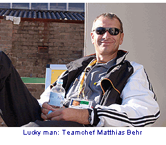 Sydney: Das Händchen von Teamchef Matthias Behr an der Planche ist genau das, wie es sich Fechter wünschen. Der ehemalige Olympiasieger weiss, was Sportler brauchen, wenn sie nervös sind: Psycholo- gische Aufmunterung. Und so kommt es, daß Behr immer den richtigen Ton findet, oooob nun die degenfech- tendtenden Strategen auf der Planche stehen, die flinken Florettisten oder die stürmischen Säbler. Nicht die technische Anweisung ist gefagt, sondern die Anfeuerung Hop-Hop zur richtigen Zeit.